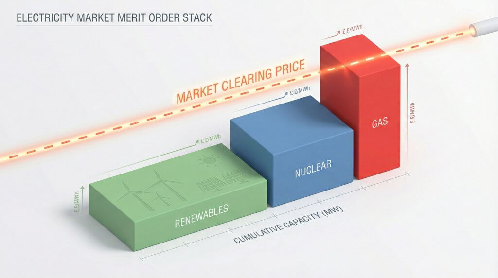 This mechanism creates a paradox for Scotland. Ideally, on a windy day, Scotland generates 100% of its electricity needs from wind (marginal cost: zero). However, because Scotland is part of the GB market, the price is not set by Scottish wind, but by the gas plant in Kent or Yorkshire that is turning on to feed London. Scottish consumers pay a gas-pegged price for zero-carbon electricity [10].